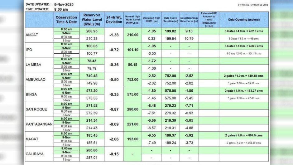 5 Dam sa Luzon, nagpakawala ng tubig sa harap ng banta ng Bagyong Uwan