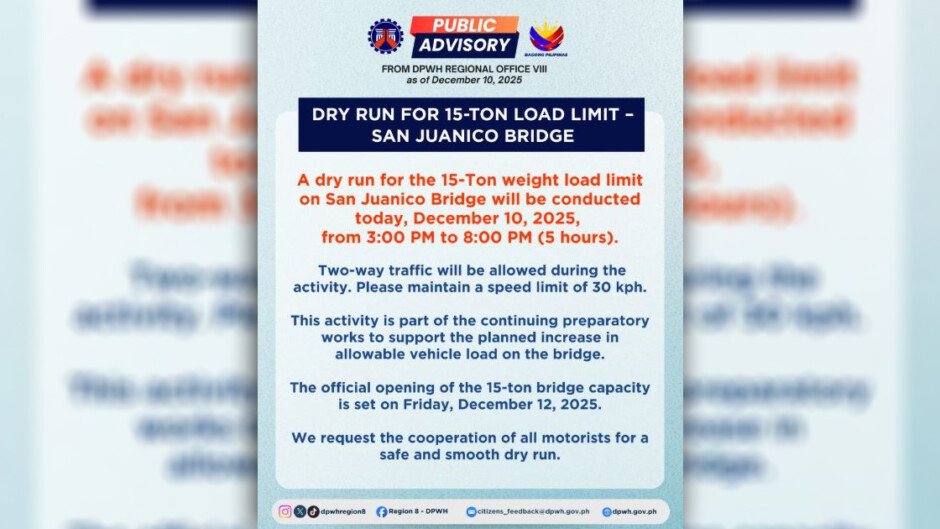 NAGSAGAWA ang Department of public Works and Highways (DPWH) ng limang oras na dry run sa San Juanico Bridge.