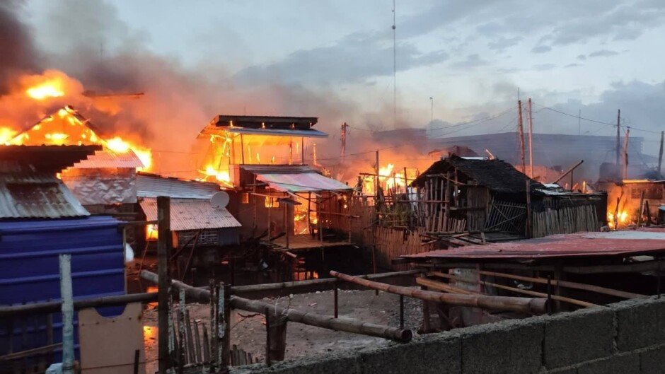 Mabilis na kumalat ang apoy sa komunidad habang binabayo ng malakas na hangin ang lugar, dahilan para mahirapan ang mga bumbero na agad makontrol ang apoy.
