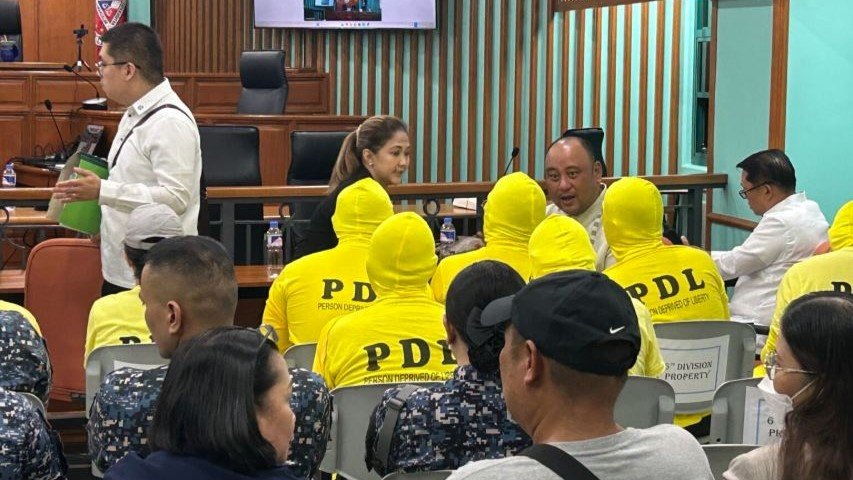 Lahat ng siyam na akusado ay physically present nang ihain ang kanilang Not Guilty Plea, habang suot ang kulay dilaw na detainee uniform at naka-posas sa kanyang arraignment.