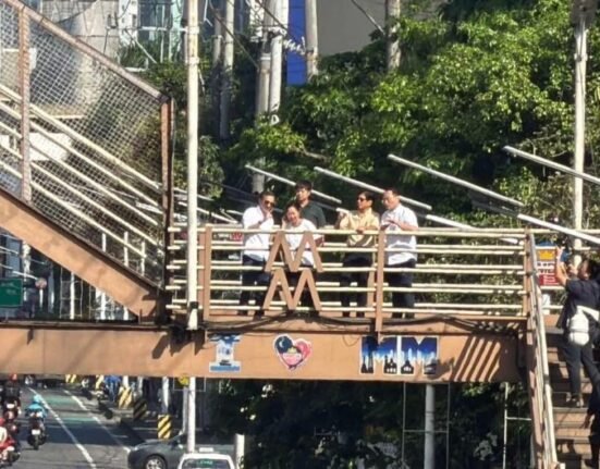 ININSPEKSYON ni Pangulong Ferdinand Marcos Jr. ang bagong Kamuning Footbridge and Busway Station sa Quezon City.