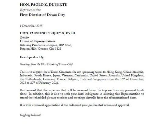 HINILING ni Davao City Rep. Paolo “Pulong” Duterte kay Speaker at Isabela Rep. Faustino “Bojie” Dy