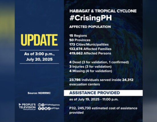 HALOS 30,000 indibidwal ang nananatili sa mga Evacuation Center dahil sa naging epekto ng Bagyong Crising