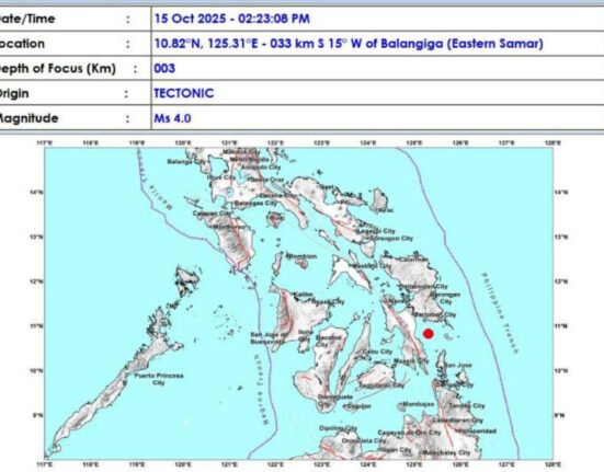 INUGA ng Magnitude 4.0 na lindol ang lalawigan ng Eastern Samar. Naitala ng PHIVOLCS ang Epicenter.