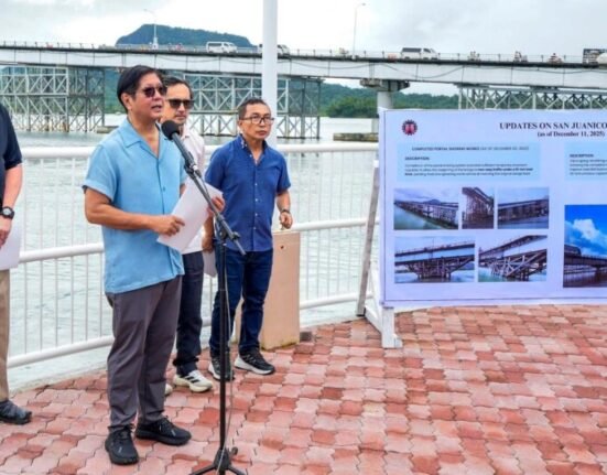 PINANGUNAHAN ni Pangulong Ferdinand Marcos Jr. noong Biyernes, ang muling pagbubukas ng San Juanico Bridge. Para.