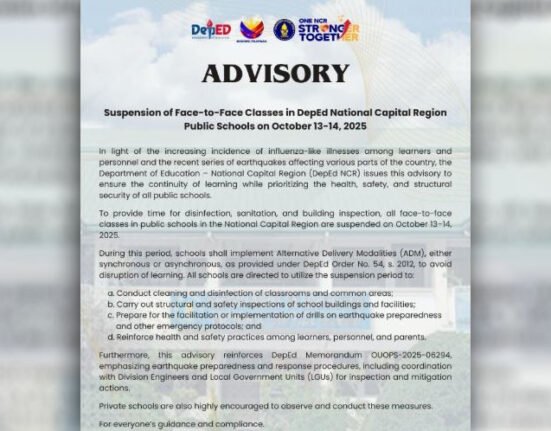 IPINAG-utos ng Department of Education – National Capital Region (DepEd-NCR) ang pagsuspende ng Face-to-Face (F2F) Classes.