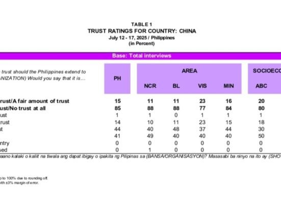 MALAKING porsyento ng mga Pilipino ang walang tiwala sa China at itinuturing ito bilang pinakamalaking banta.