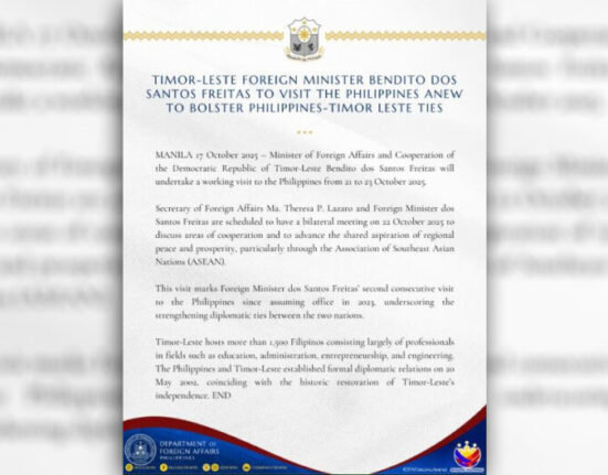 INANUNSYO ng Department of Foreign Affairs (DFA) ang nakatakdang Working Visit ni Timor-Leste Foreign Minister Benito.