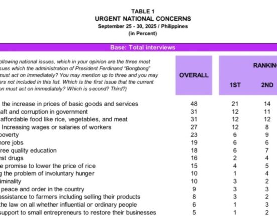 PUMANGALAWA ang Graft and Corruption sa Top National Concerns ng mga Pilipino, batay sa pinakabagong Survey.