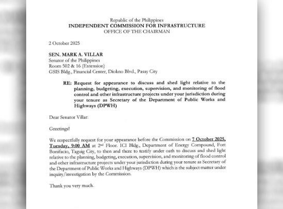 PINADALHAN na ng imbitasyon ng Independent Commission for Infrastructure o ICI si Senator Mark Villar para.