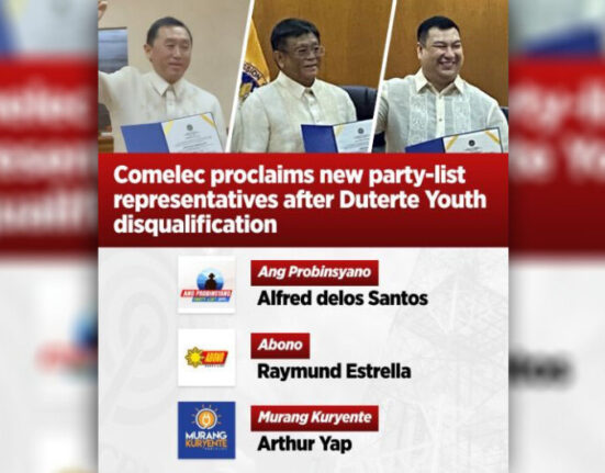 NAIPROKLAMA na ng Commission on Elections bilang National Board of Canvassers ang tatlong Partylist Representatives na.