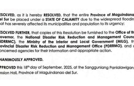 INAPRUBAHAN ni Maguindanao Del Sur Gov. Datu Ali Midtimbang ang resolusyon ng Provincial Board para sa.