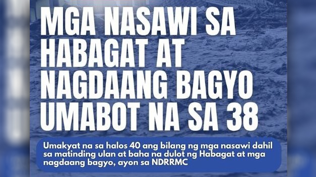 Death Toll sa pananalasa ng Habagat at mga Bagyong Crising, Dante, at Emong, umakyat na sa 38