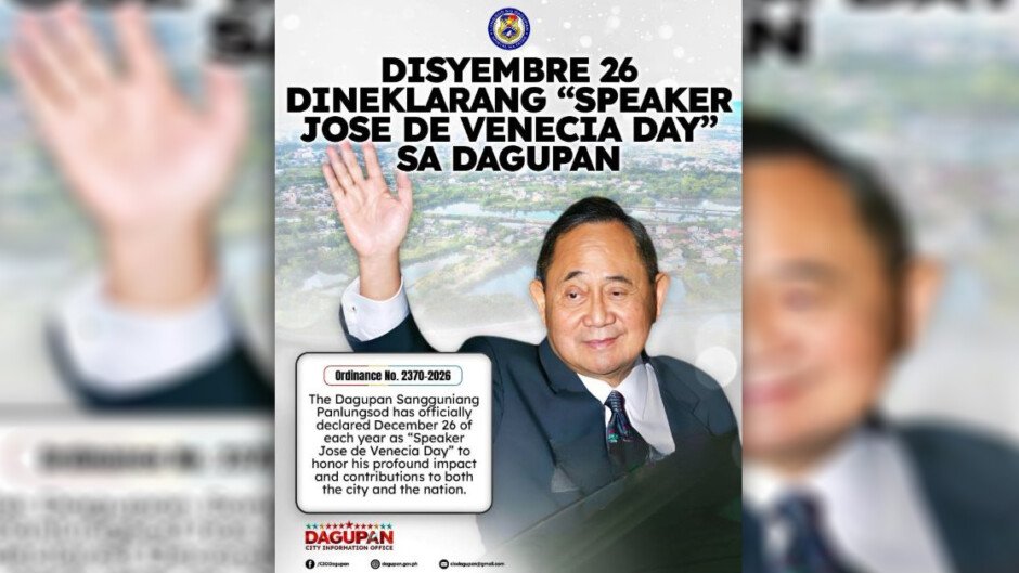 Sa inaprubahang ordinansa, tuwing December 26 ay magkakaroon ng “Speaker Jose de Venecia Leadership and Public Service Commemoration” para gunitain ang buhay, pamumuno, at dedikasyon sa paglilingkod sa publiko ng dating house speaker.