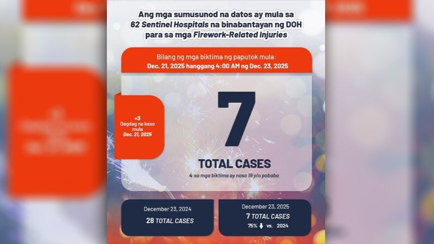 DOH, nakapagtala na ng 7 nasugatan dahil sa paputok