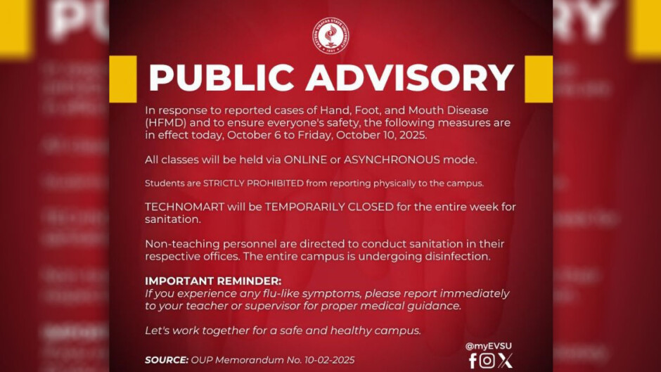 Ayon sa EVSU, layunin ng kanilang hakbang na maiwasang lumaganap pa ang sakit at upang matiyak ang ligtas na kapaligiran para sa mga estudyante at staff sa pagbabalik ng In-Person Classes.
