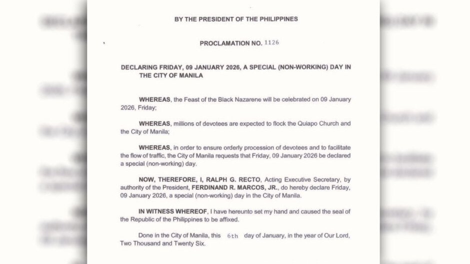 Jan. 9, idineklarang Special Non-Working Day sa Maynila; Gun Ban, ipatutupad sa lungsod simula Jan. 8 hanggang 10 kaugnay ng pista ng Nazareno