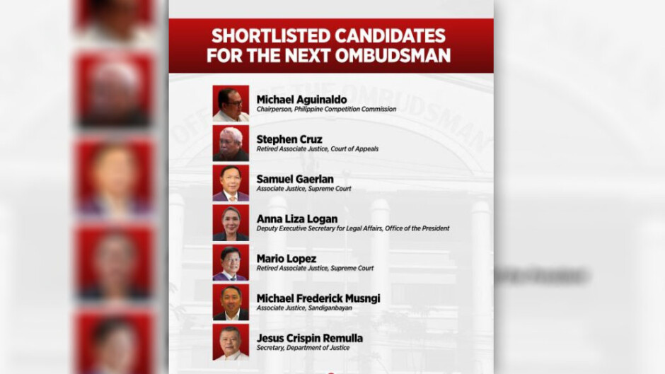 Isa sa pitong nabanggit ang hihirangin bilang bagong ombudsman kapalit ng nagretriro na si Samuel Martires.
