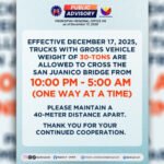 DPWH, pinayagan ang pagtawid ng 30-ton trucks sa San Juanico Bridge tuwing gabi