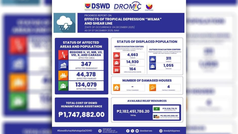 MAHIGIT isandaan tatlumpu’t apat na libong indibidwal ang naapektuhan ng Tropical Depression Wilma at ng Shear Line, ayon sa Department of Social Welfare and Development (DSWD).