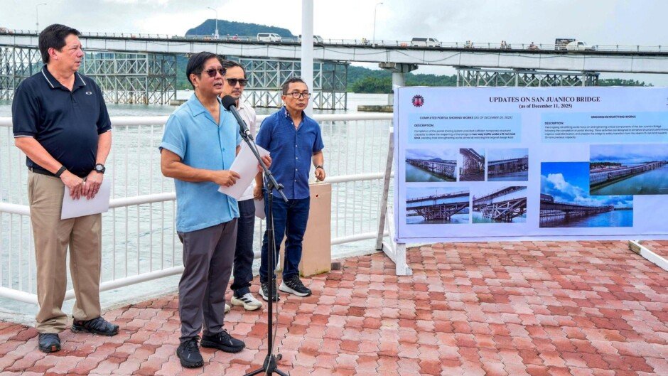 Kasama ng pangulo si DPWH Secretary Vince Dizon sa pag-iinspeksyon ng 2.16-kilometer na tulay, na nangangailangan ng karagdagang 650 million pesos para maabot ang 30-ton capacity.
