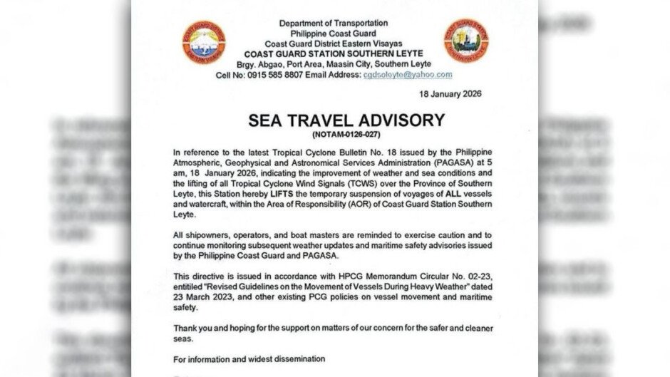 NAGPAPATULOY na ang sea travels sa malaking bahagi ng Eastern Visayas, matapos bawiin ng Philippine Coast Guard (PCG) ang suspensyon sa mga biyahe.