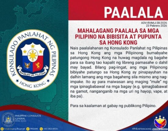 NAGPAALALA ang Philippine Consulate General Office sa mga Pinoy sa Hong Kong kaugnay sa pagtanggap ng.
