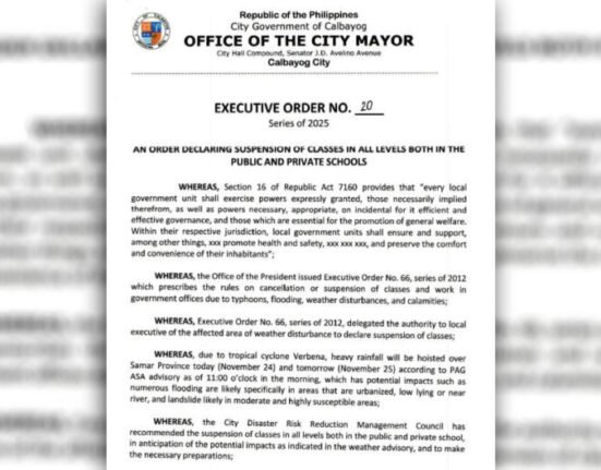 IPINAG-utos ng Office of the City Mayor sa Calbayog ang suspensyon ng klase sa lahat ng.