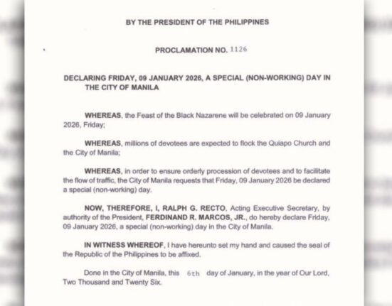 IDINEKLARA ng Malakanyang bilang Special Non-Working Day sa Maynila ang araw ng Biyernes, January 9 para.