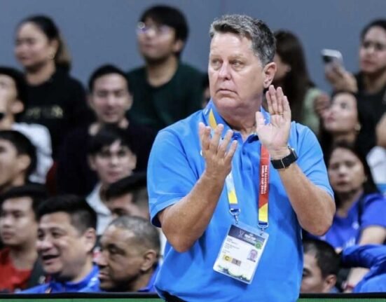 NAGPAABOT ng pagbati si Gilas Pilipinas Head Coach Tim Cone kay Gilas-SEA Games Head Coach Norman.