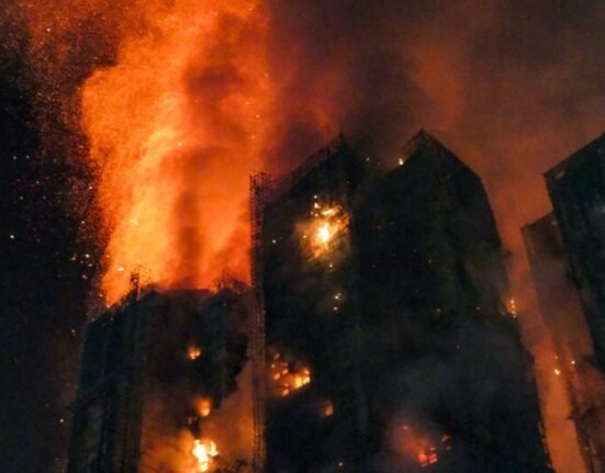 HINDI bababa sa apat ang patay habang ilan pang indibidwal ang na-trap kasunod ng malaking sunog.