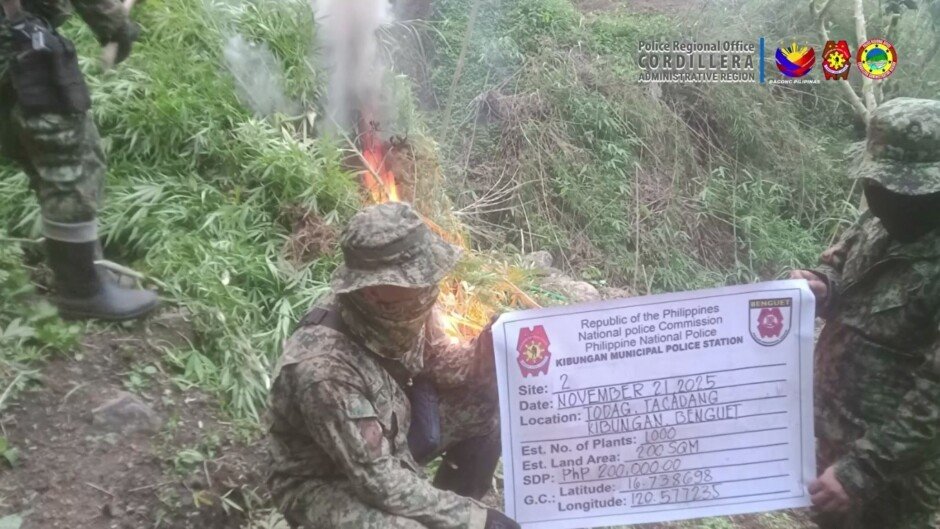 Sa ulat mula sa Regional Operations Division ng PRO-CAR, nagsagawa ng magkahiwalay na Eradication Operations ang pulisya sa Brgy. Kayapa sa bayan ng Bakun at sa Brgy. Tacadang sa bayan ng Kibungan.