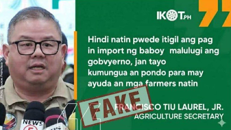 Batay sa kumakalat na quote card, pinalalabas na nagbigay ng pahayag ang kalihim tungkol sa pagpapalakas ng produksyon ng native na baboy dahil akma ito sa klima ng bansa.