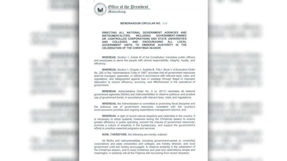 Sa awtoridad na ibinigay ng pangulo, inilabas ni Executive Secretary Ralph Recto ang Memorandum Circular 110.