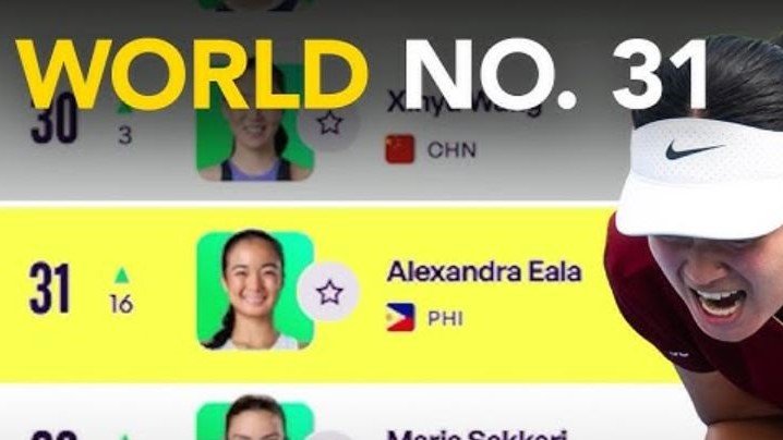 Naabot ng bente anyos na Pinay ang panibagong career-high No. 31 mula sa No. 47 noong nakaraang Linggo.