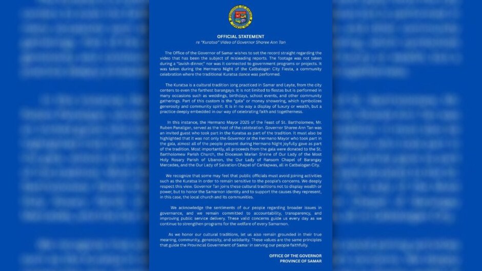NAGPALIWANAG si Samar Governor Sharee Ann Tan kaugnay sa viral video ng pagsasayaw nito habang hinahagisan ng pera.