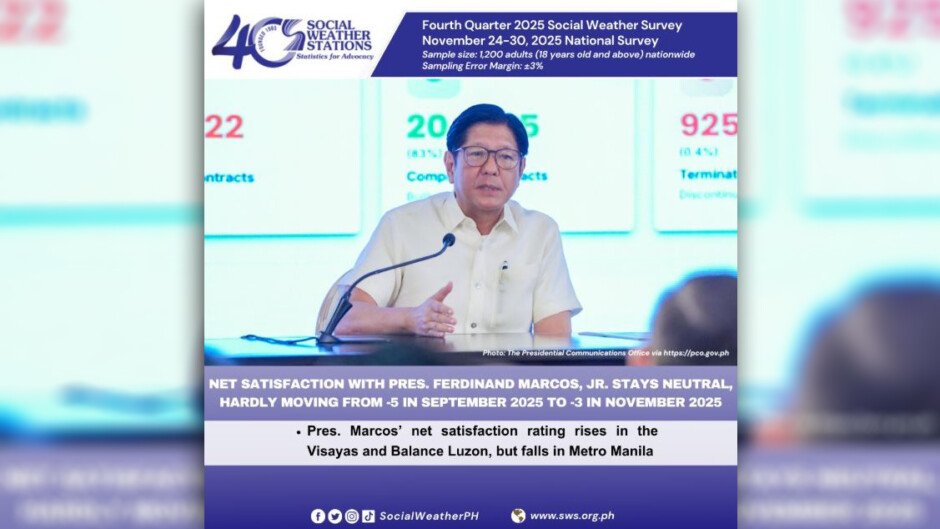 NANATILING neutral ang net satisfaction rating ni Pangulong Ferdinand Marcos Jr. ayon sa resulta ng latest survey ng Social Weather Station o SWS.