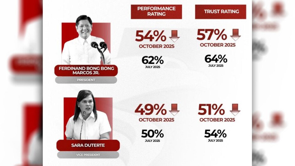 BUMABA ang Trust at Performance Ratings nina Pangulong Ferdinand Marcos Jr. at Vice President Sara Duterte sa ikatlong quarter ng taon, batay sa datos ng OCTA Research.