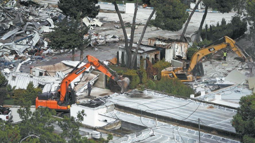 Dumating sa compound ang mga pulis, maging ang enforcement officers mula sa Israel Land Authority, na may kasamang bulldozers at engineering equipment at inumpisahang i-demolish ang headquarters.