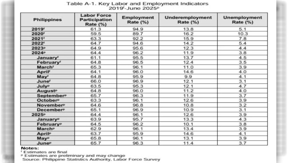 BUMABA ang Unemployment at Underemployment Rates sa bansa noong Hunyo kumpara noong Mayo, ayon sa Philippine Statistics Authority (PSA).